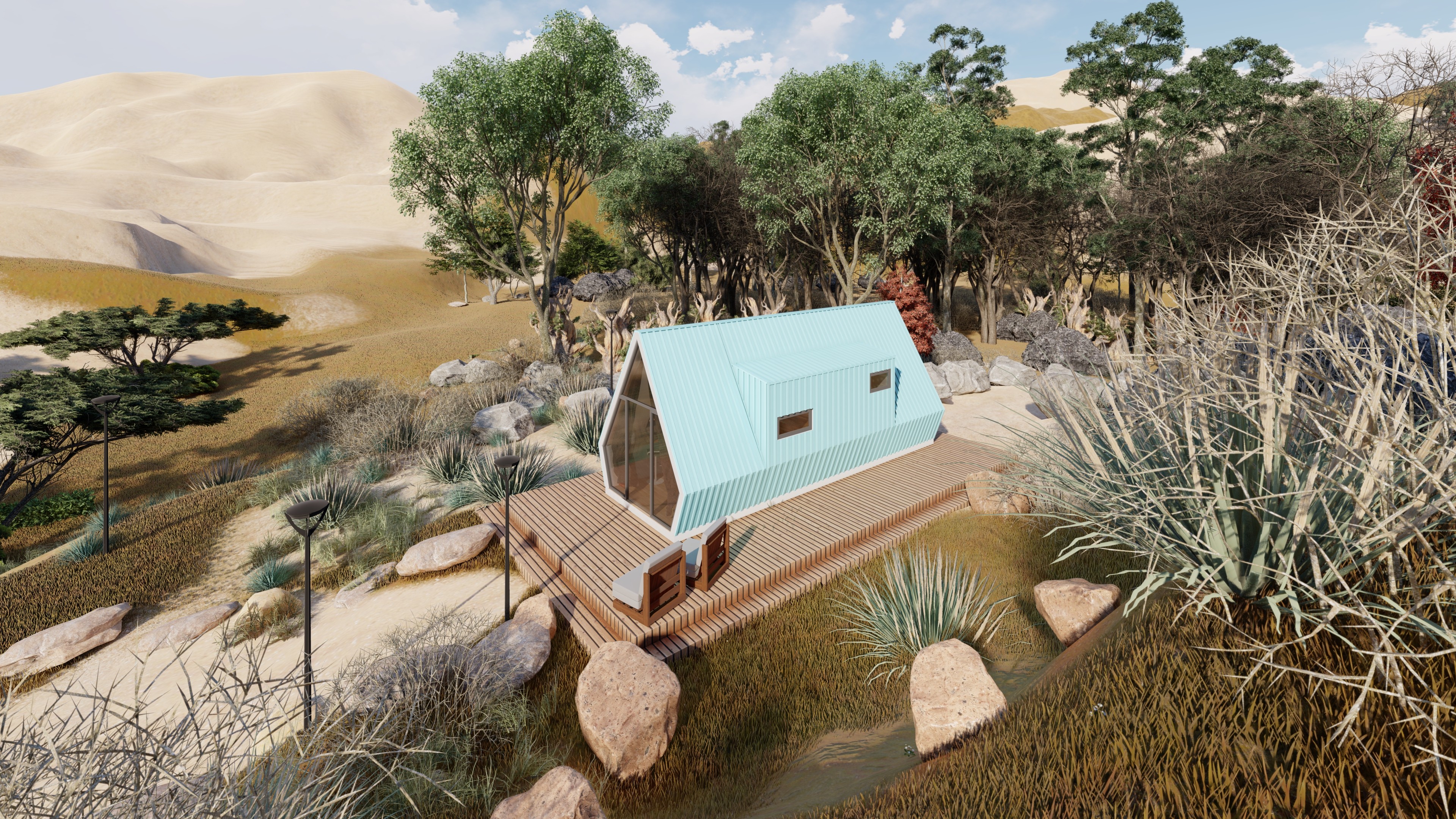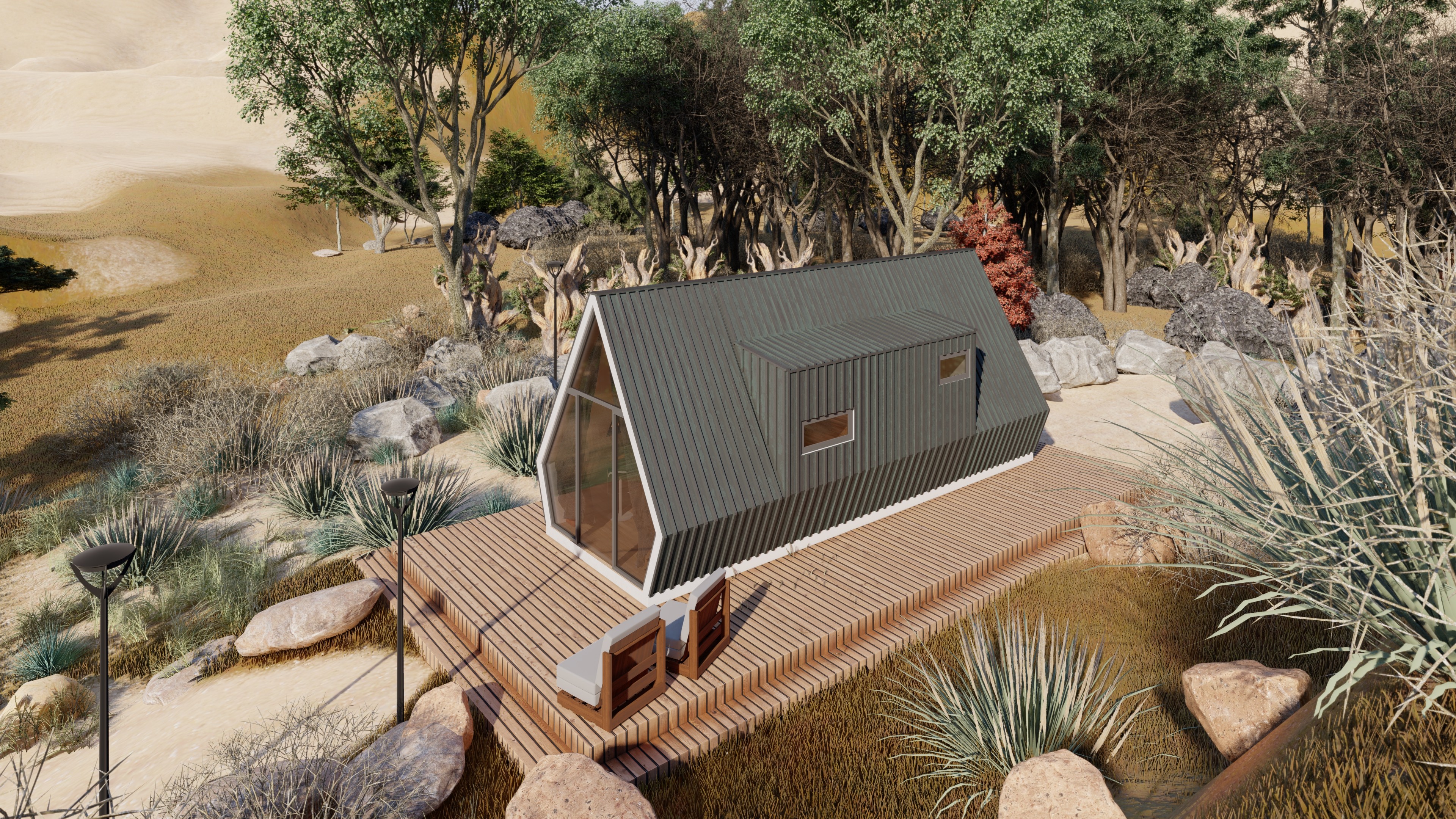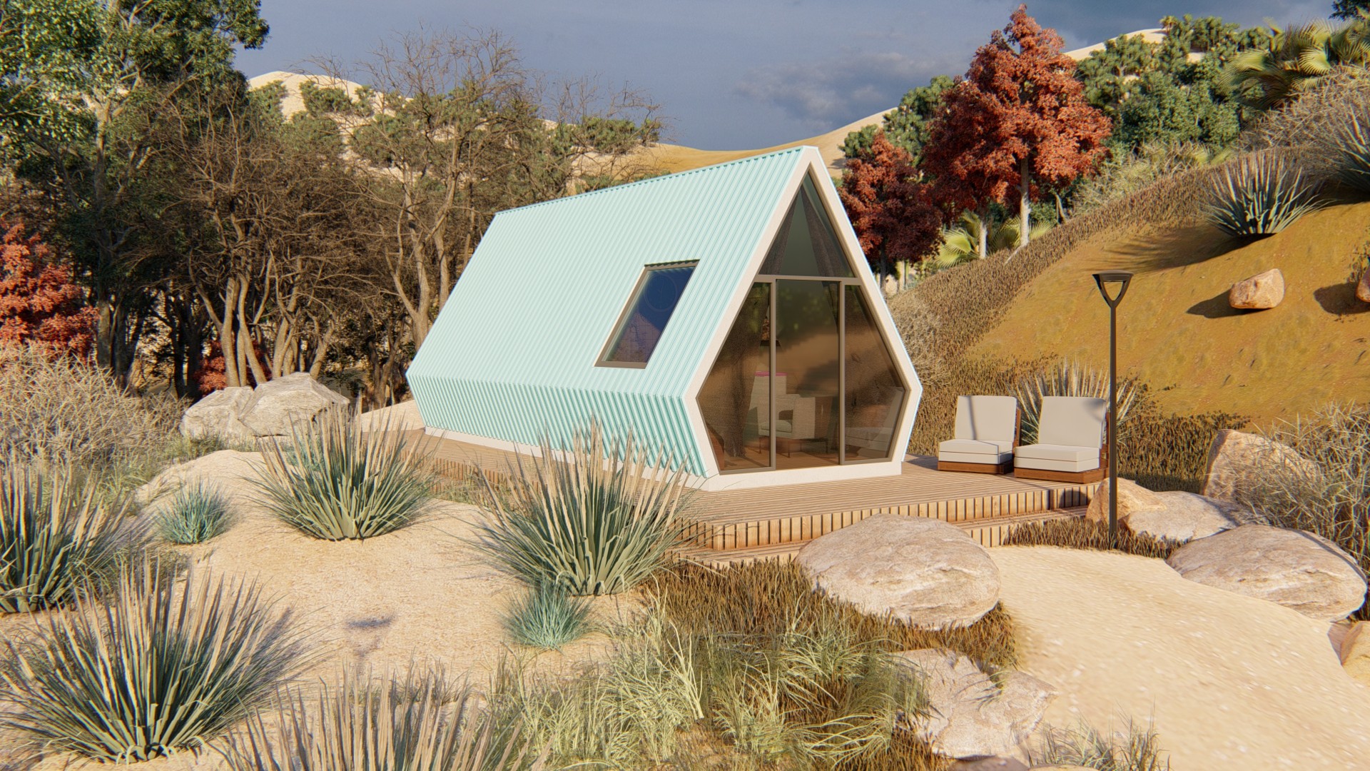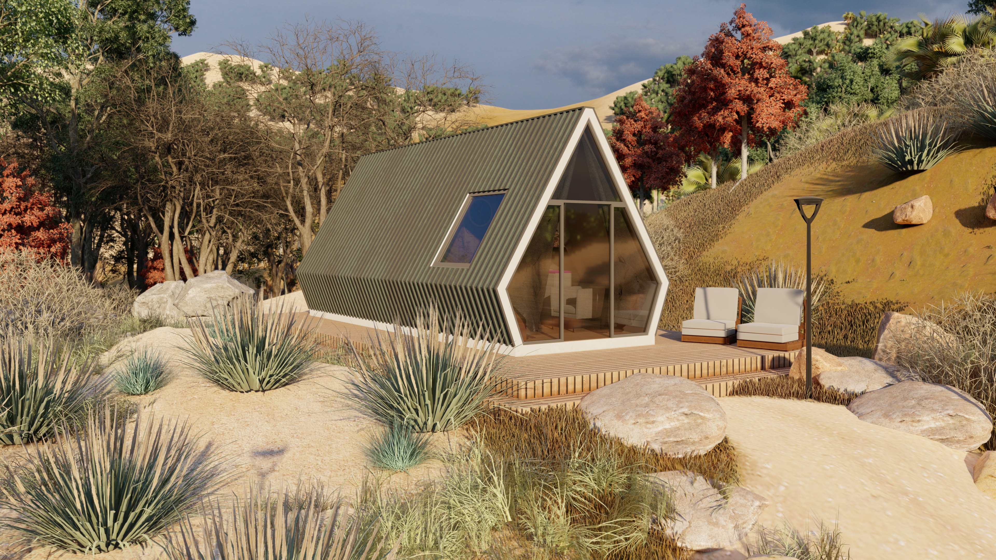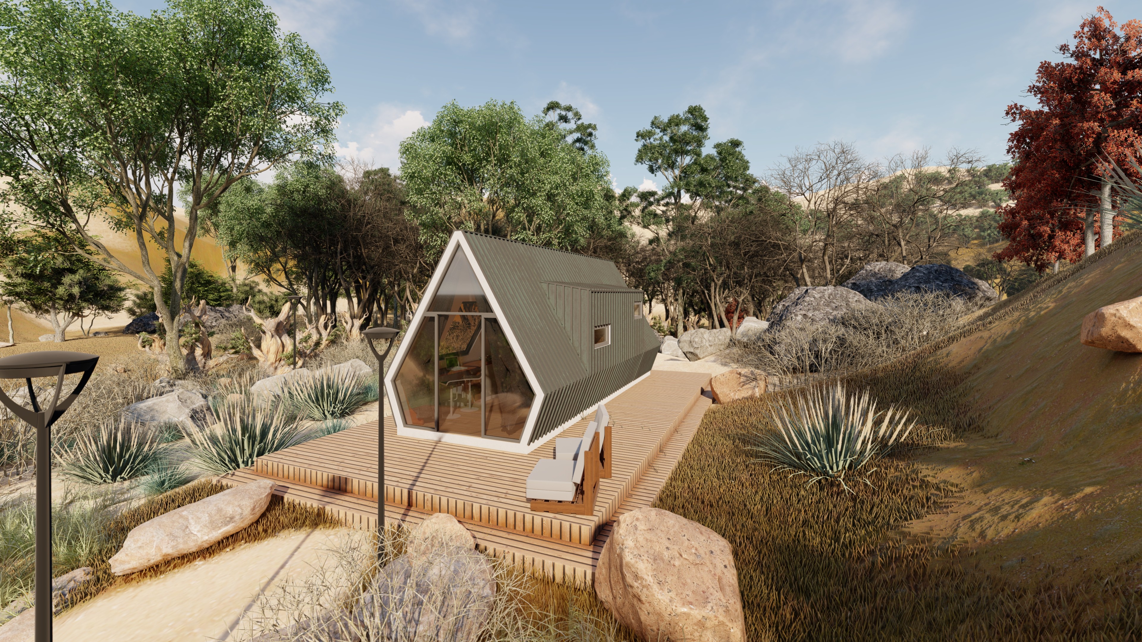 Modelo Bogotá é ideal para uma estadia de fim de semana. Com uma estrutura triangular característica, este modelo combina charme rústico com toques modernos, oferecendo uma vista deslumbrante da paisagem onde se insere. A escolha perfeita para relaxar longe da cidade.