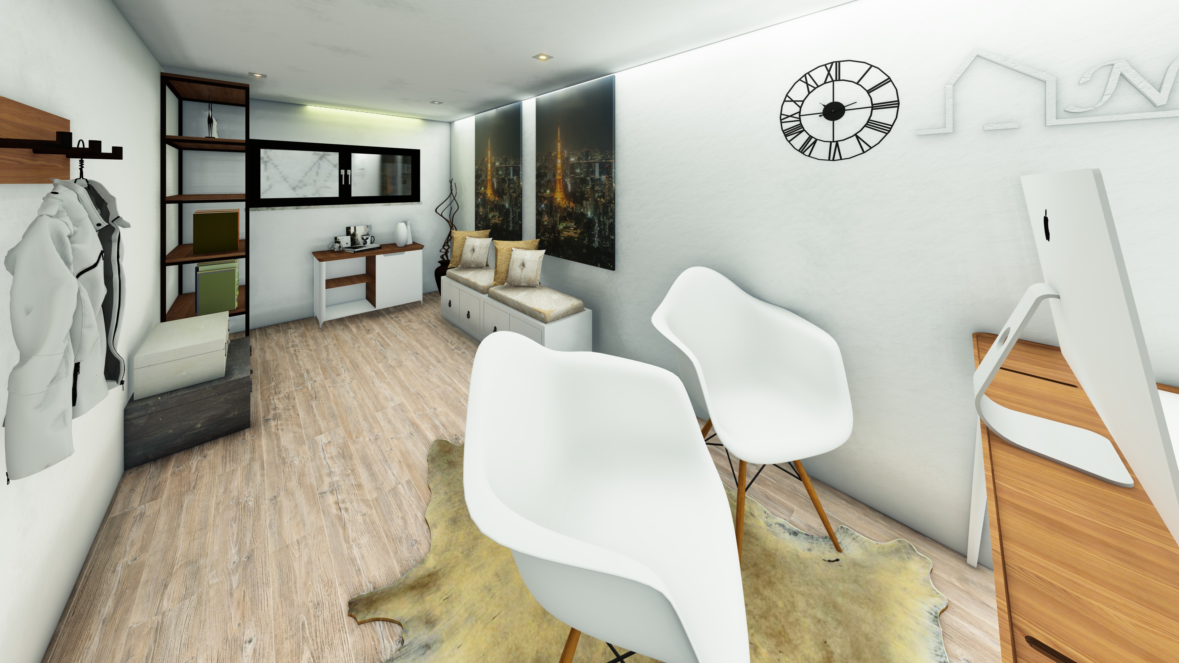 O interior permite vários acabamentos, tratando-se de um espaço acolhedor e bem aproveitado, oferecendo espaço suficiente para duas áreas de trabalho ou, em alternativa, para uma pequena zona de lazer ou atividades criativas.
